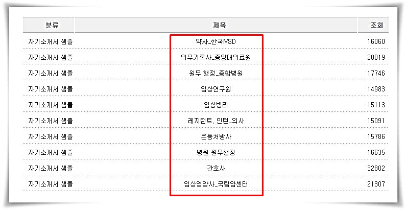 특히 자기소개서 작성에 대해서 어려워 하는 분들을 위해서 병원별, 직종별로 자소서 샘플도 제공하고 있다 보니 첫 입사지원을 하는 분들에게 많은 도움이 된다고 합니다.