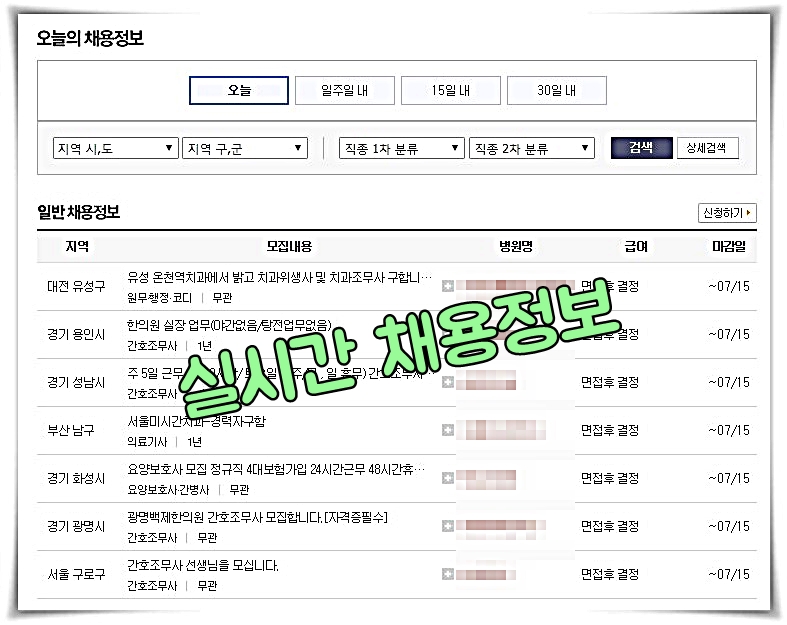 지역으로만 검색을 해도 대부분 비슷한 급여조건인지, 근무환경 여건 등을 비교해볼 수가 있기 때문에 자신에게 최대한 잘 맞는 병원을 선택할 수가 있는 것입니다.