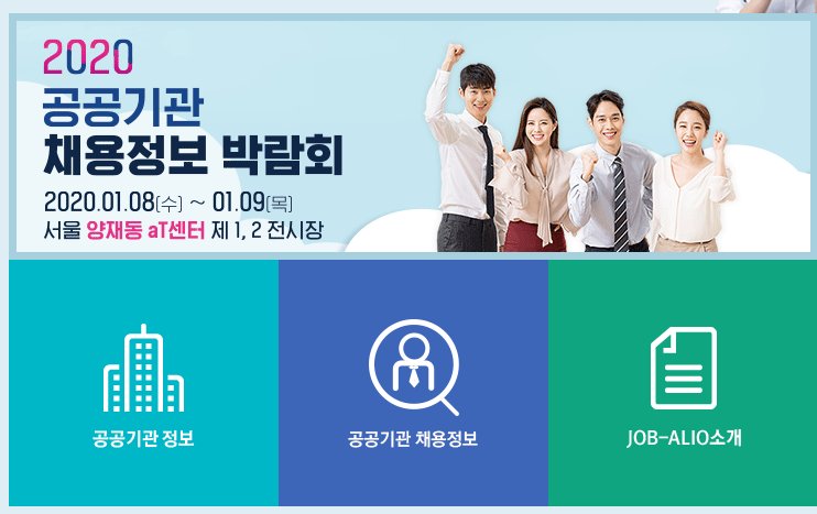 잡알리오는 기획재정부에서 운영하는 홈페이지로 취업을 희망하는 사람들에 필요한 공공기관 및 공기업 채용정보를 제공하고 있다.