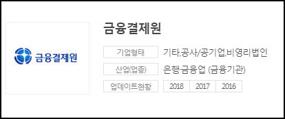 4위는 금융결제원이 올랐습니다. 은행, 금융업을 주로 담당하고 있어서 많은 사람들이 입사지원을 하는 회사 중 하나라 할 수 있습니다.