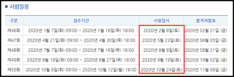 2~3개월에 한 번씩 시험이 예정되어 있어 상반기부터 꾸준히 준비한다면 하반기에는 중급까지도 취득할 수 있기 때문에 국가공무원 시험을 준비하고 있는 사람들이라면 필수적으로 취득해 두는 것이 좋다고 할 수 있습니다.