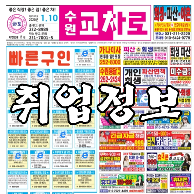 그중에서도 수원교차로 구인구직 페이지는 지역내의 많은 일자리 정보는 물론 매일 새롭게 올라오는 각종 취업정보로 가득 차 있다고 할 수 있다.