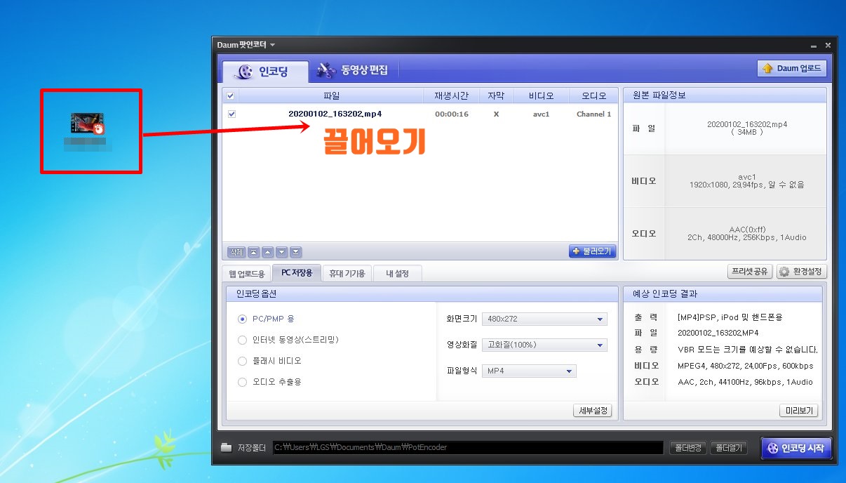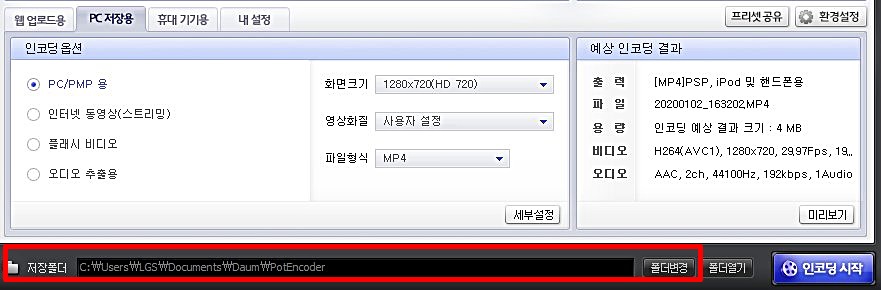 다음팟인코더 하단에 보시면 위와같은 저장 폴더가 있습니다.