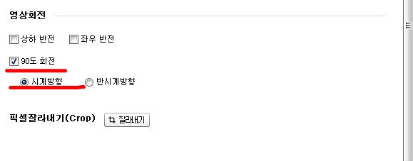 여기서 동영상 회전방향을 설정할 수가 있는데요. 시계방향으로 할 것인지 반시계 방향인지 상하반전, 좌우반전을 선택하시면 됩니다.