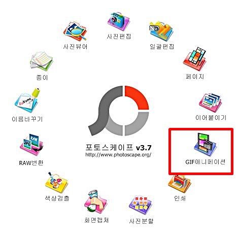 제일 먼저 포토스케이프 프로그램을 실행한 후 GIF 애니메이션 카테고리로 들어가도록 하자.