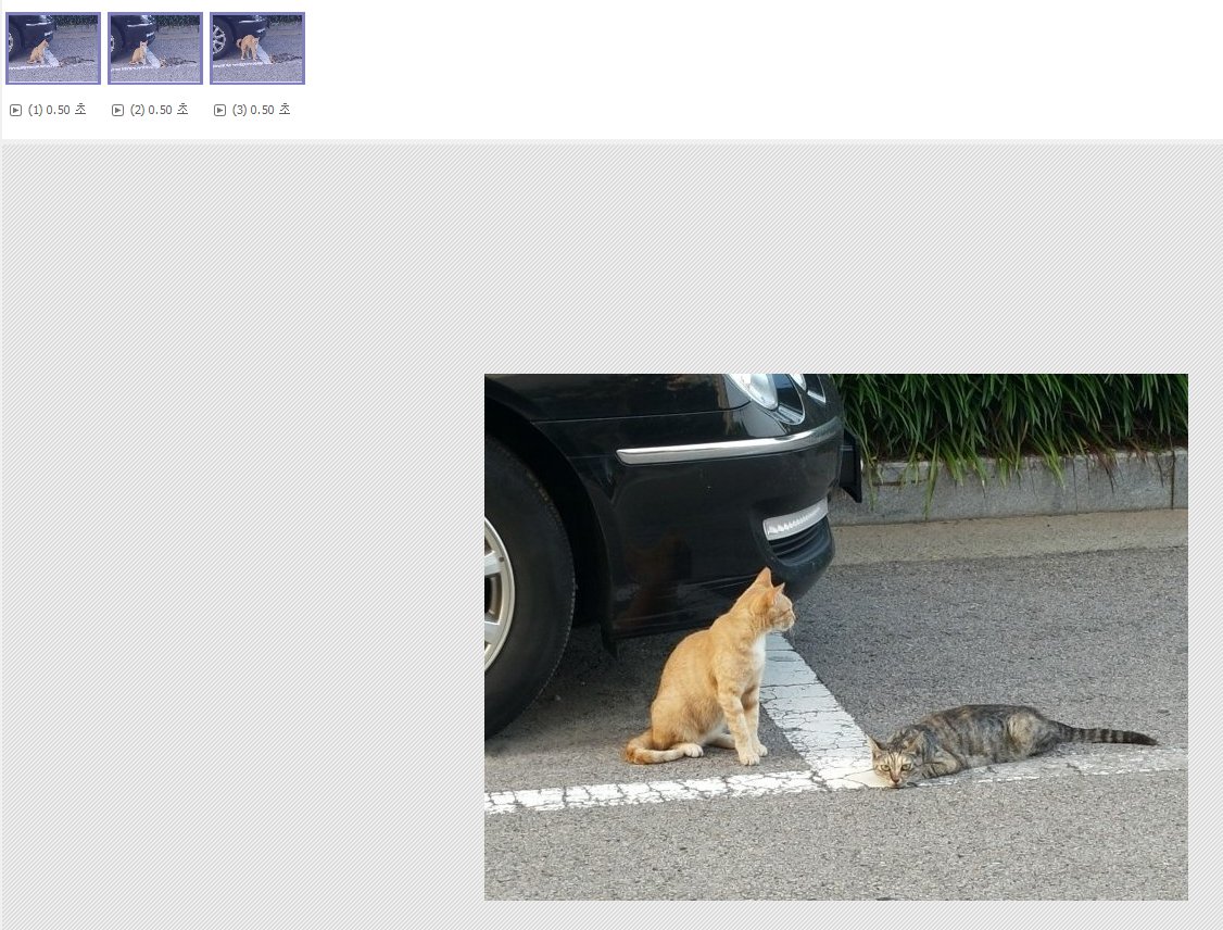 그랬더니 사진들이 0.50초 간격으로 다음사진으로 넘어가면서 마치 고양이가 움직이는 것과 같은 효과를 볼 수 있었다.
