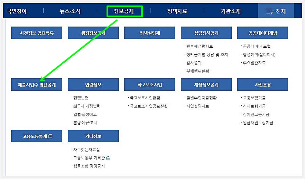고용노동부 홈페이지 정보공개 게시판으로 들어가서 체불 사업주 명단 공개를 확인하시면 업체 정보를 확인할 수가 있습니다.
