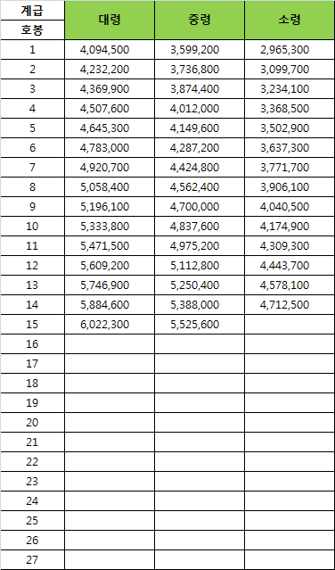이렇게 군대 계급별 호봉표와 함께 급여를 알아봤는데요, 이해가 좀 되셨나 모르겠네요.