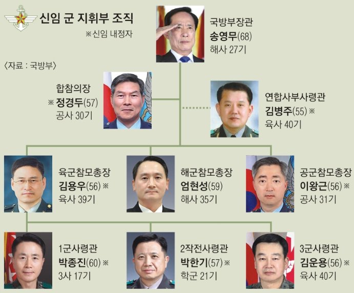국방부 장관을 제외한 합참의장, 연합사 부사령관, 각군 참모총장, 1,2,3 군사령관 총 8명이 이죠.