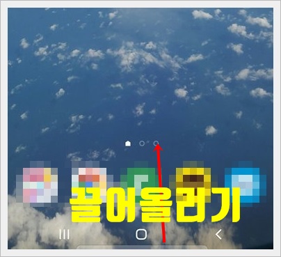 그다음 휴대폰 바탕화면을 보면 아랫부분에 회색으로 살짝 보이는 네모 박스가 있는 것을 확인할 수 있습니다. 일종의 단축기능 이라고 할 수 있는데요 끌어올리면 바로 삼성 페이 화면으로 연결이 되는 것을 알 수 있습니다.