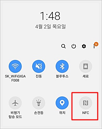 휴대폰 설정 화면으로 들어가서 NFC를 카드 모드로 변경해주시면 됩니다.