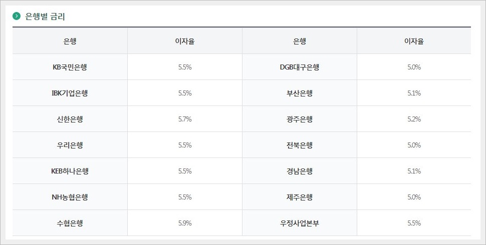 국방부 홈페이지에 나와있는 장병내일준비적금 금리를 살펴보면 은행별로 대부분 비슷하지만 수협은행이 5.9%로 가장 높은 금리를 제공하고 있습니다.