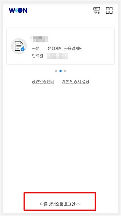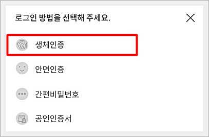 혹시 지문인식 로그인이 보이지 않는다면 로그인 방식 변경에서 지문인증 혹은 생체인증을 선택하면 된다.