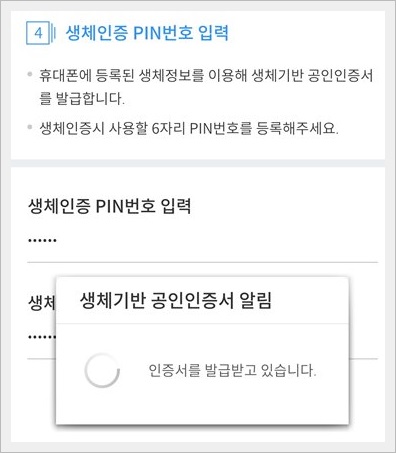 마지막 단계는 생체인증을 위한 PIN 번호 설정이다. 6자리의 번호로 만들 수가 있는데 잊어버리면 안 되기 때문에 꼭 적어두는 것이 좋다.