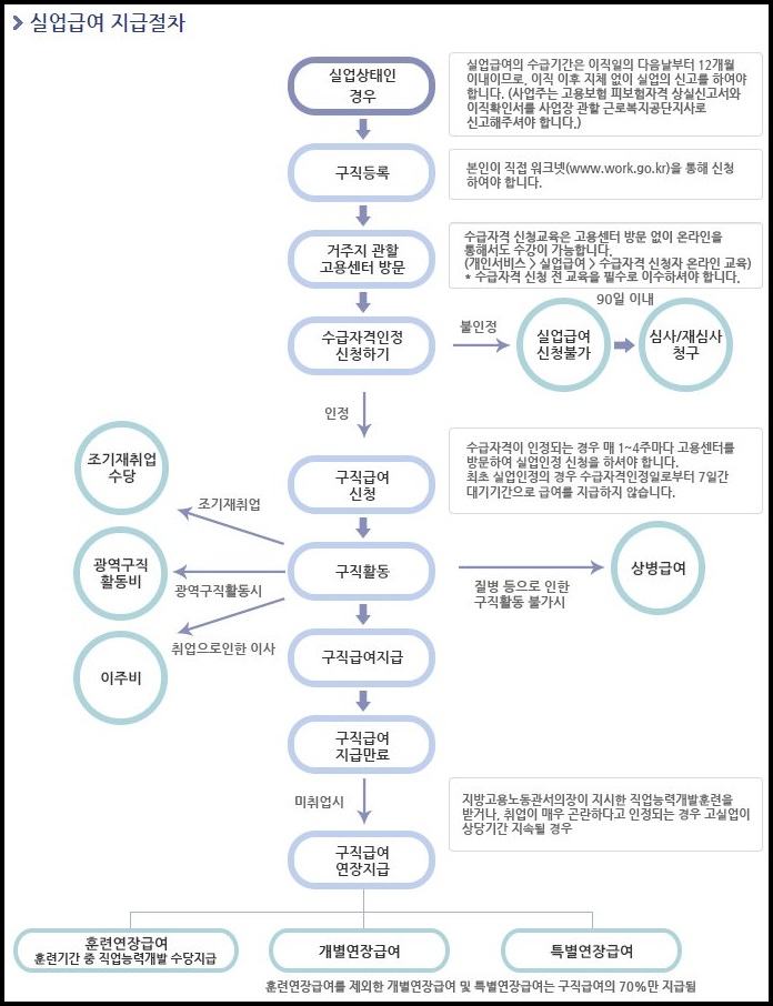 자 지급대상과 지급액이 어느정도 되는지 확인하셨다면 이제 신청을 하셔야겠죠. 실업급여 신청방법은 다음과 같습니다.