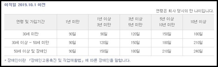 이직일이 2019년 10월 1일 이전인 분들의 경우 평균임금의 50%가 적용된다는점 참고하시기 바랍니다.