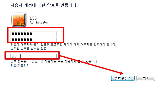 암호를 혹시라도 까먹을 수도 있기 때문에 암호 힌트 또한 설정할 수가 있습니다. 암호를 잊어버리게 되면 접속을 못하는 불상사가 생기게 때문에 암호 설정 시 꼭 기억하기 쉬운 자신만 아는 암호로 하는 것이 필요합니다.