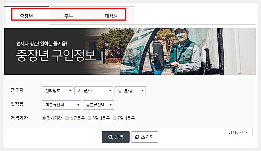구인구직 게시판의 가장 큰 장점은 상대적으로 취업에 어려움을 겪고 있는 중장년, 주부 등을 대상으로 한 맞춤 채용관을 운영하고 있다는 점입니다. 점점 노년 인구가 많아지면서 노년층의 활발한 취업도 상당히 중요해졌는데요.