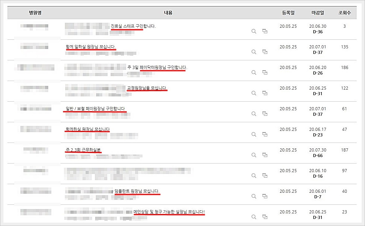 실제 채용정보 게시판을 살펴보면 하루에도 전국에서 등록되는 다양한 치과관련 채용정보를 확인할 수 있습니다.
