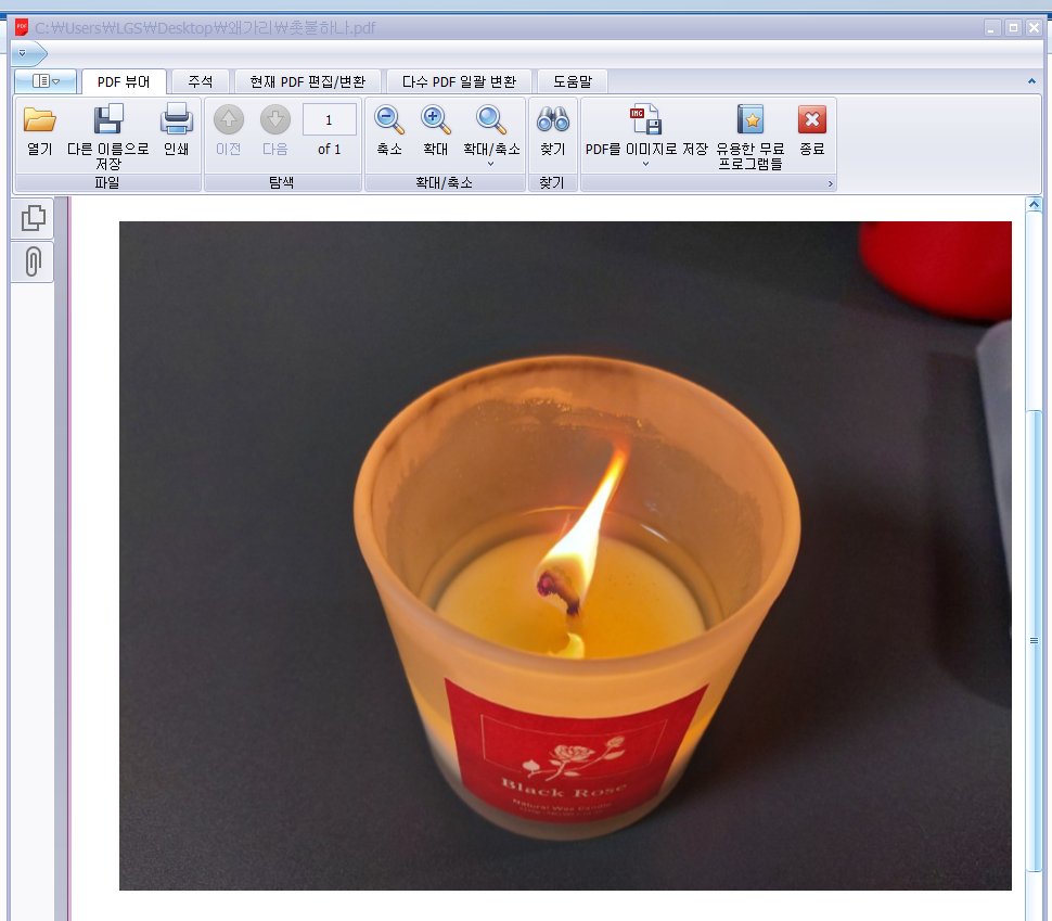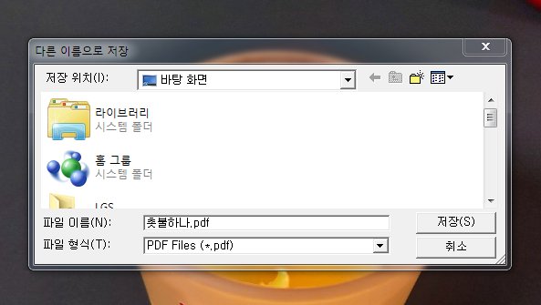 테스트삼아 바탕화면으로 지정을 했기 때문에 촛불하나라는 이름의 pdf 파일이 생성된것을 알수있다.