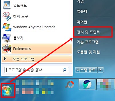설치가 다 끝났다면 가장 먼저 해줄것이 내컴퓨터에 → 장치 및 프린터로 접속을 하는것이다.