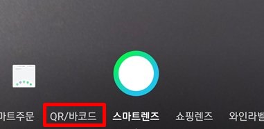 렌즈버튼을 눌렀다면 다음과 같은 화면을 볼 수가 있다. 이중 QR/바코드 버튼을 선택해 준다.