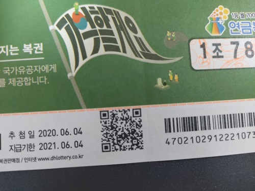다음은 우리가 스캔하고자 하는 코드를 준비해보도록 하자. 얼마 전 길을 가다가 새롭게 출시된 연금복권 720을 구매한 적이 있다. 연금복권 당첨 확인 또한 QR코드를 통해서 가능하기 때문에 확인해보았다.