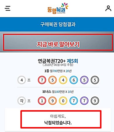 과연 대망의 1등에 당첨되었을지 궁금해서 서둘러 당첨결과 확인 버튼을 눌러보았다.